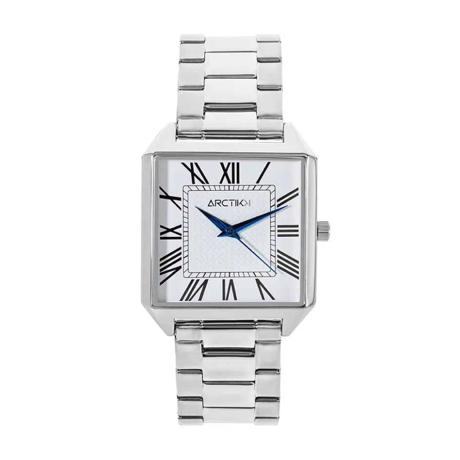 Montre Arctik Boitier Alliage Doré Fond Blanc Bracelet Cuir de vache Marron