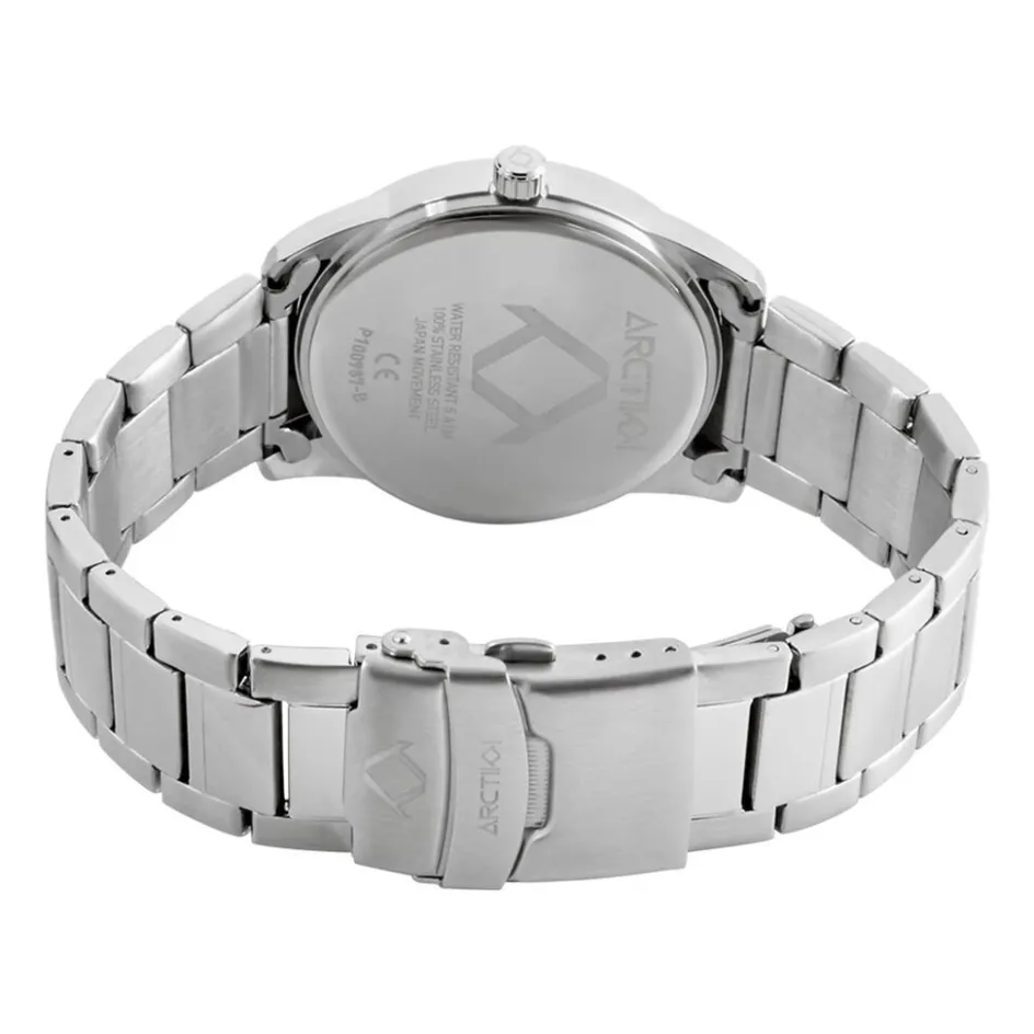 Montre Arctik Element Alliage Argenté Ronde Quartz 40.6mm Fond Blanc Bracelet Acier Argenté P100987-b
