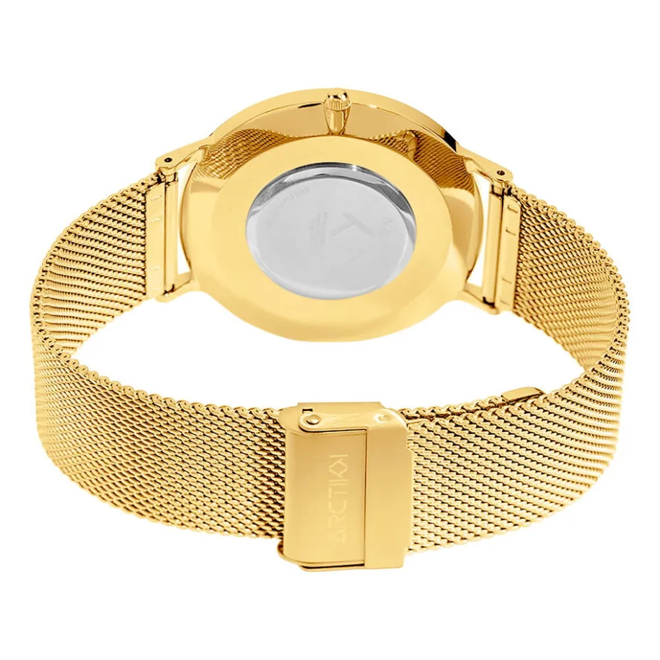 Montre Arctik Nomade Acier Doré Ronde Quartz 41mm Fond Noir Bracelet Milanais Acier Doré Ar.2014m-b/07m