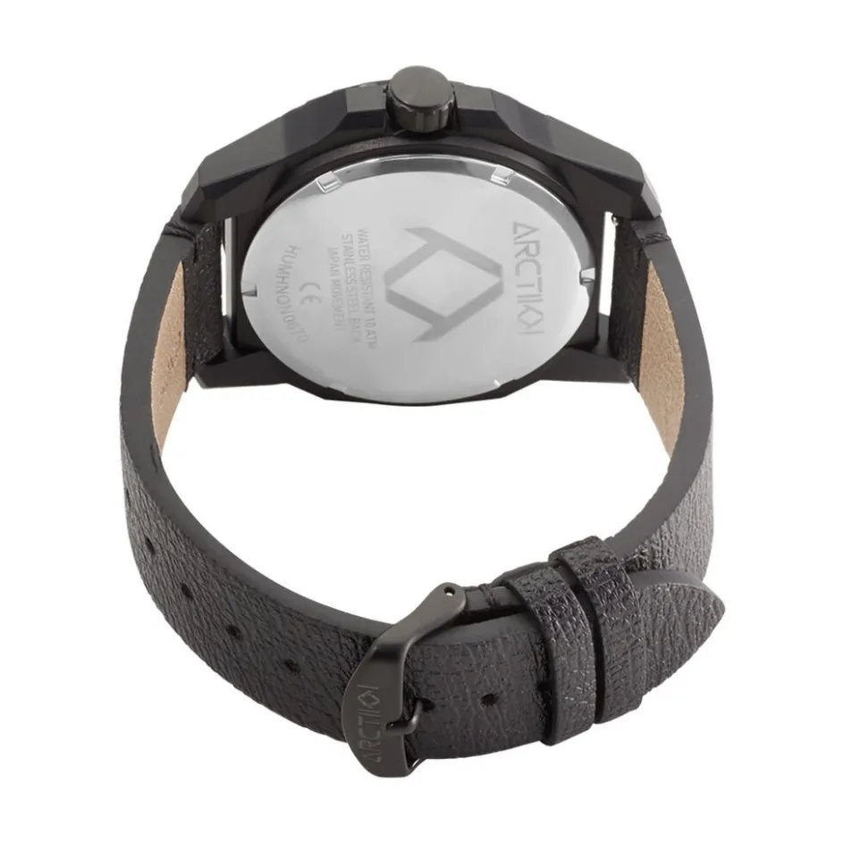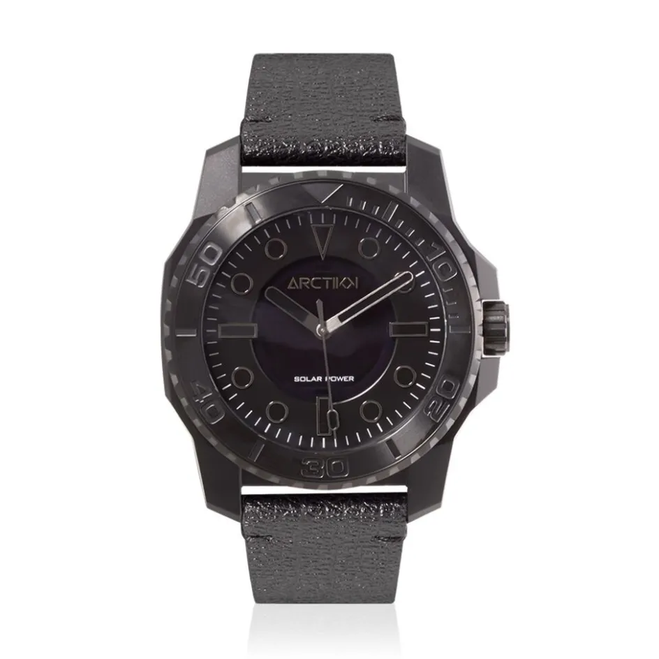 Montre Arctik Fusion Tx Plastique Et Acier Noir Ronde Solaire 47mm Lunette Noire Fond Noir Bracelet Cuir Noir Ar.1869j/01