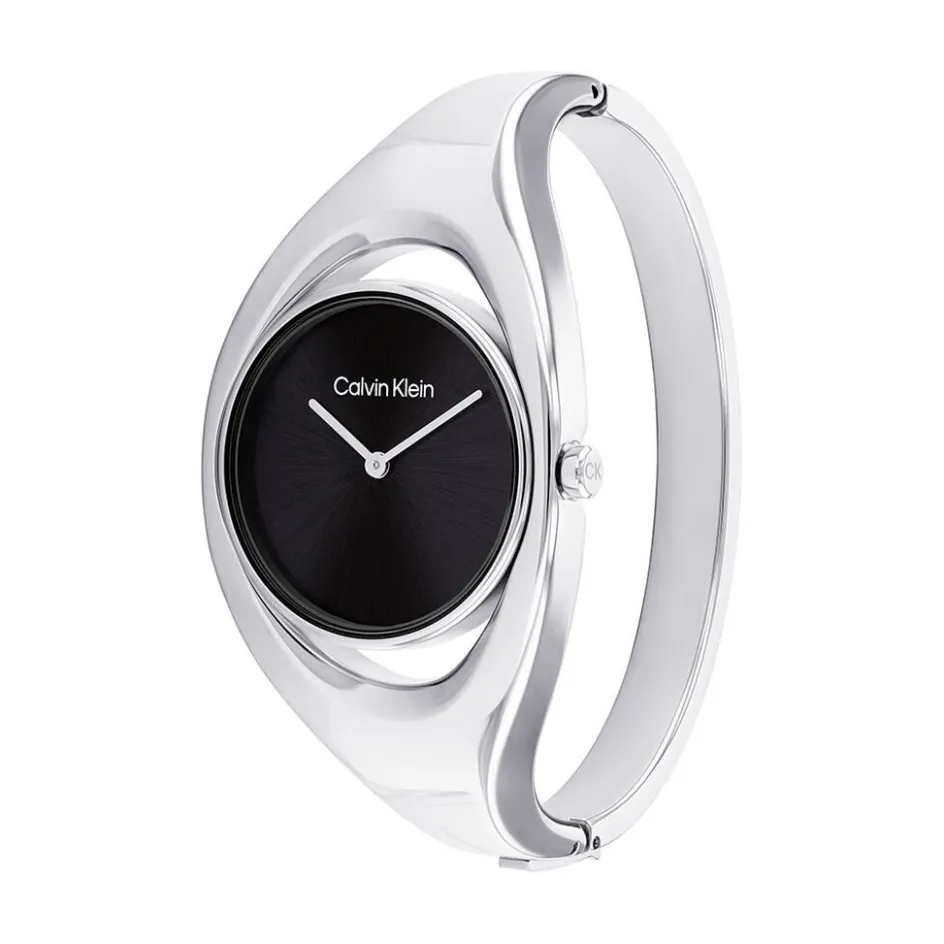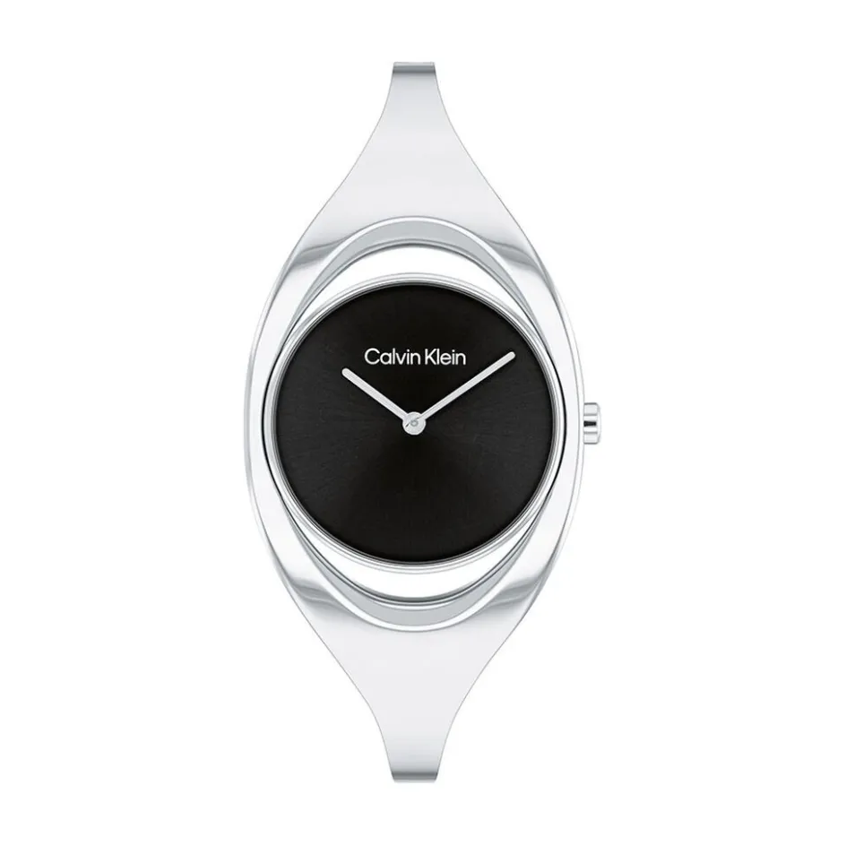 Montre Calvin Klein Elated Boitier Acier Argente Rond 30mm Quartz Fond Noir Bracelet Acier Argente 25200423