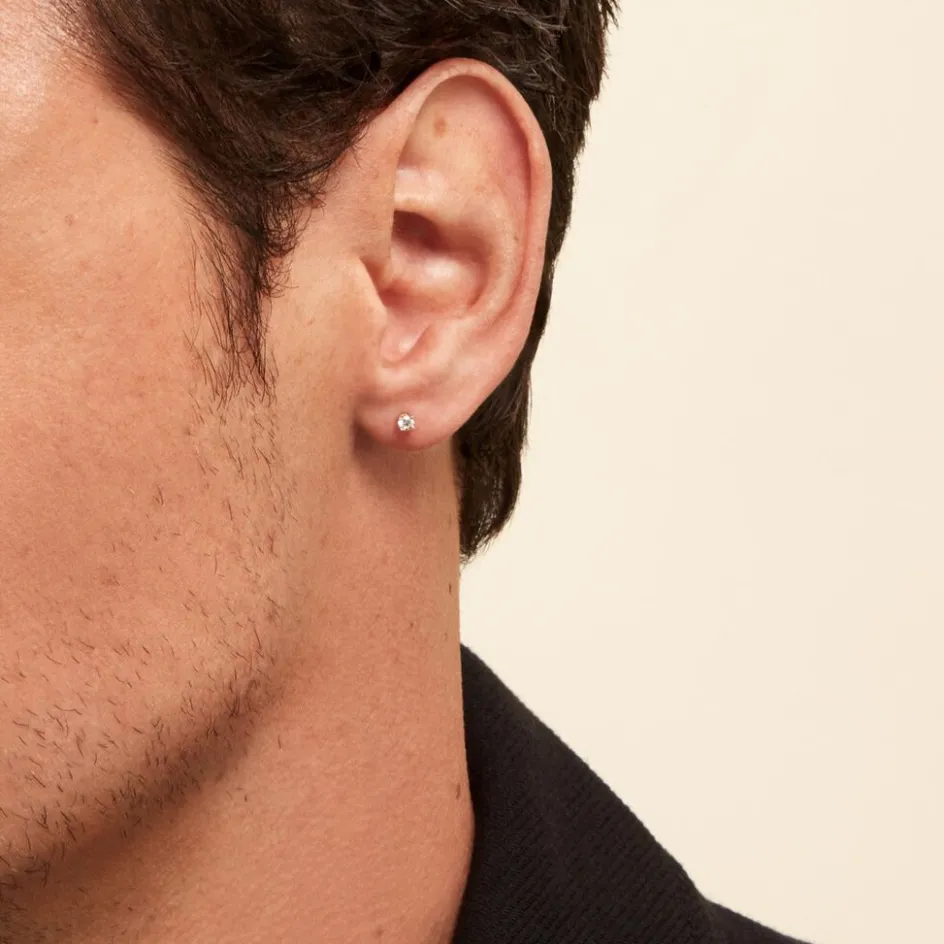 Boucle D’oreille Puce Unitaire Or Jaune 375/1000 Diamant 0.075cts Serti Griffes