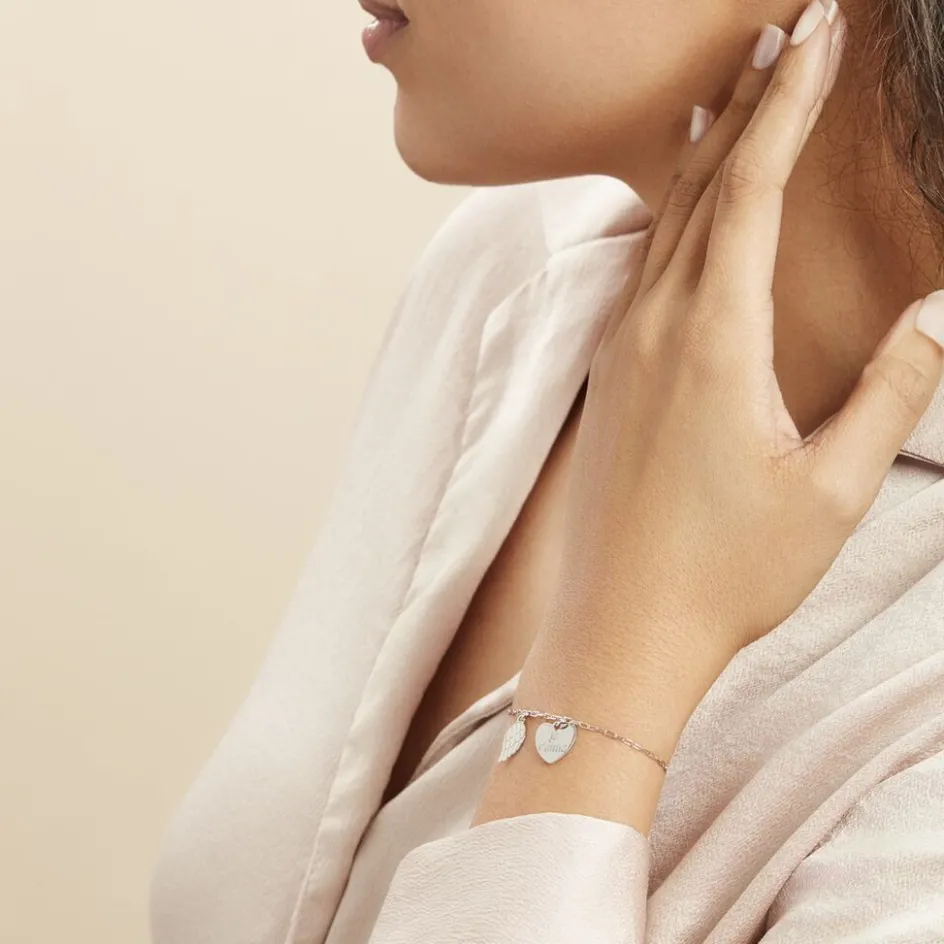 Bracelet Argent 925/1000 Coeur Je T’aime Maille Cheval 18cm