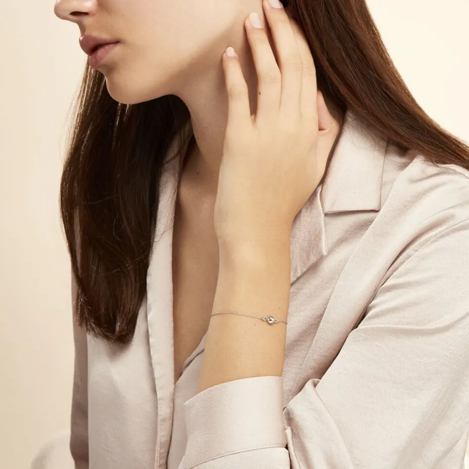 Bracelet Argent Blanc 925/1000 Demi Sphere Diametre 6mm Maille Forcat 19cm