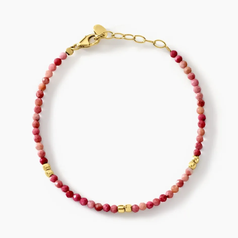 Bracelet Argent Jaune 925/1000 Rhodonite Roses Et Boules Argent Jaune 14+2cm