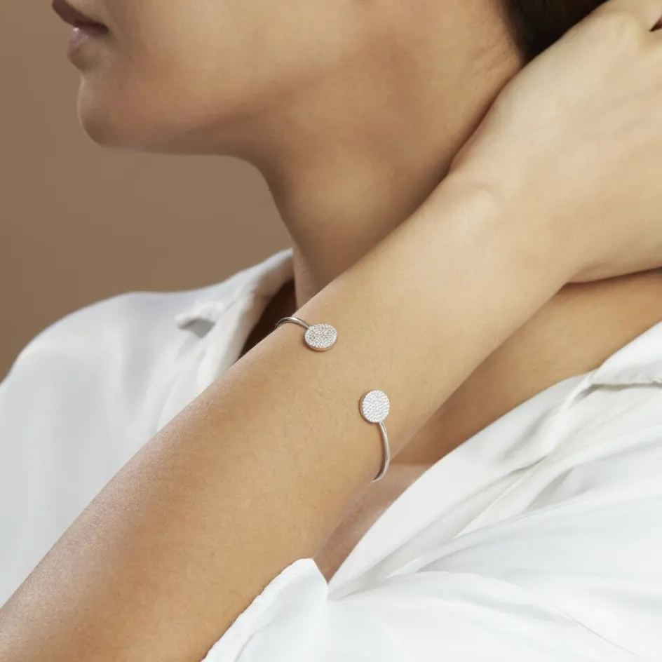Bracelet Jonc Argent 925/1000 domitylle Ouvert Double Pastilles Pavage Oxydes De Zirconium 6*5cm