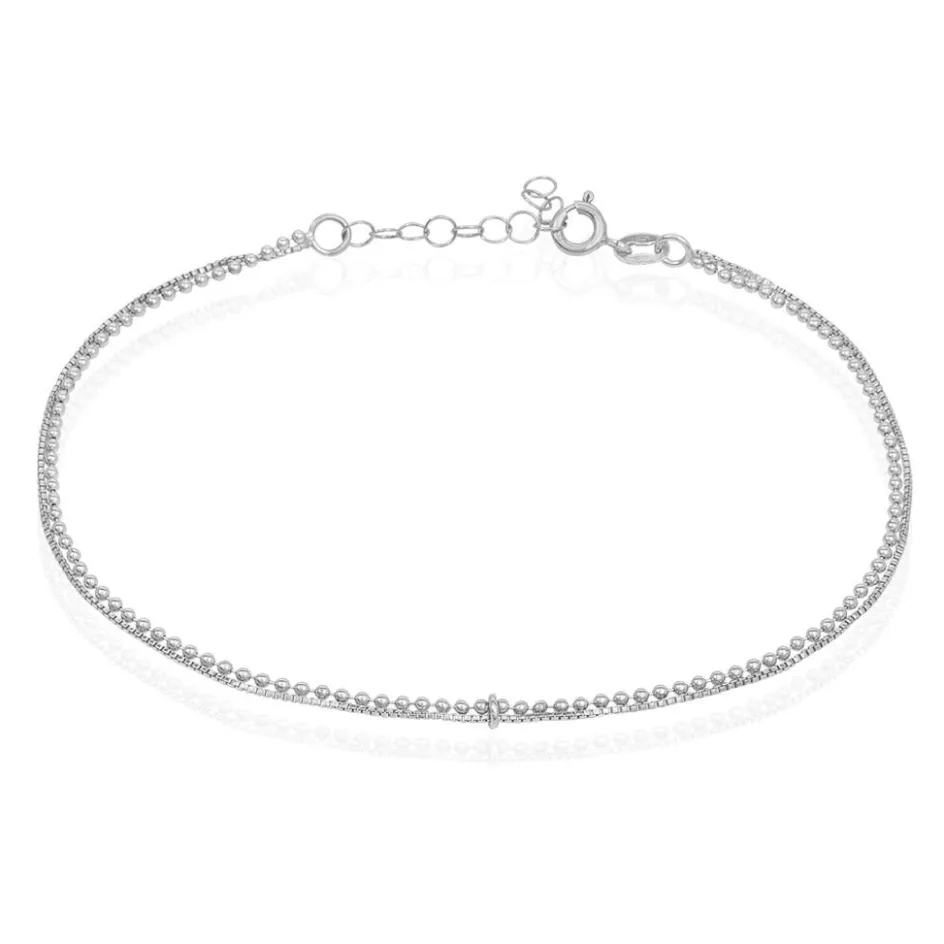 Chaine De Cheville Argent Blanc 925/1000 Double Mailles Boules Et Venitienne 26cm