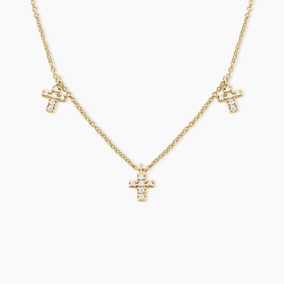 Collier Plaque Or Jaune Fatos Croix Pavage Oxydes De Zirconium 44cm
