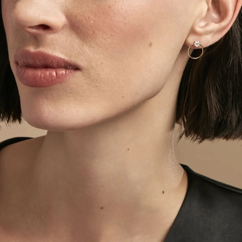 Créoles Or Jaune 375/1000 Coeur Oxydes De Zirconium Serti Griffes