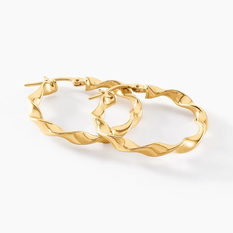 Creoles Or Jaune 750/1000 Rondes Fil Rond Torsade 3.1mm Largeur Diametre 20mm