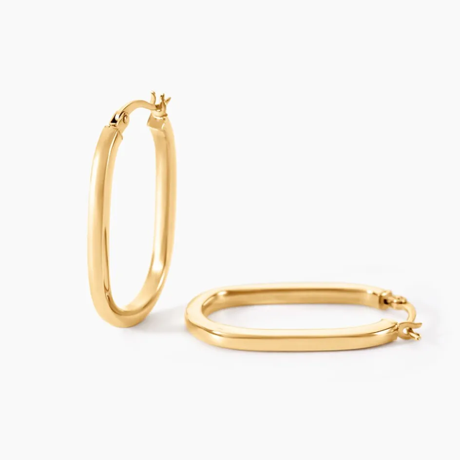 Créoles Or Jaune 375/1000 Ovale Fil Carré Largeur De Fil 2Mm Diametre 25Mm