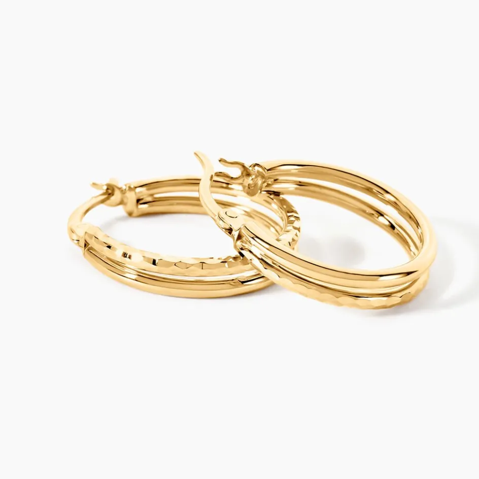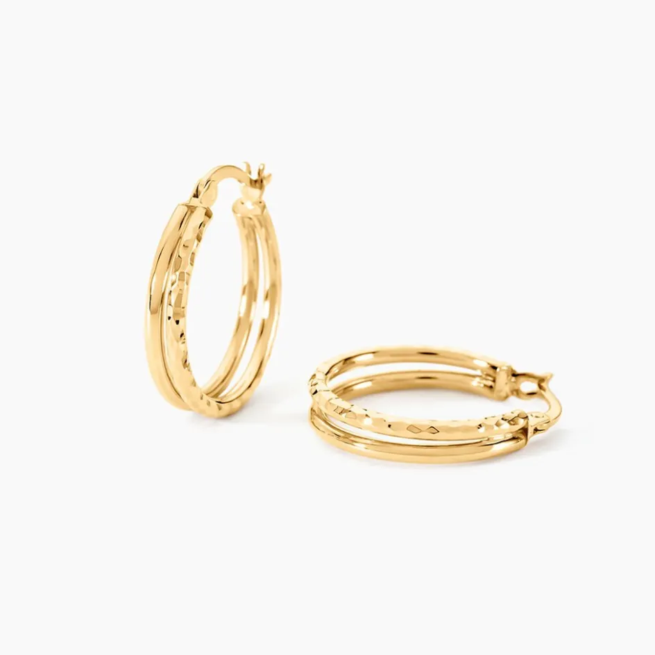 Créoles Or Jaune 375/1000 Double Rang Diamanté Diametre 15Mm