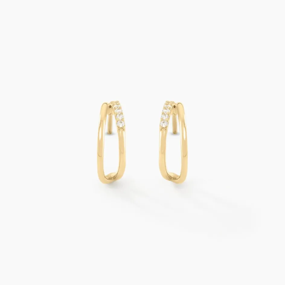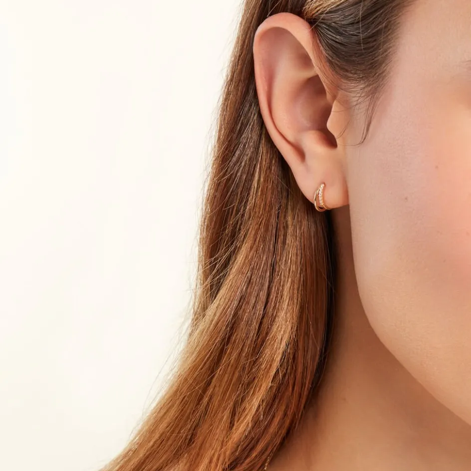 Demi Creoles Or Jaune 375/1000 2 Rangs Dont 1 Avec Oxydes De Zirconium Serti Griffes
