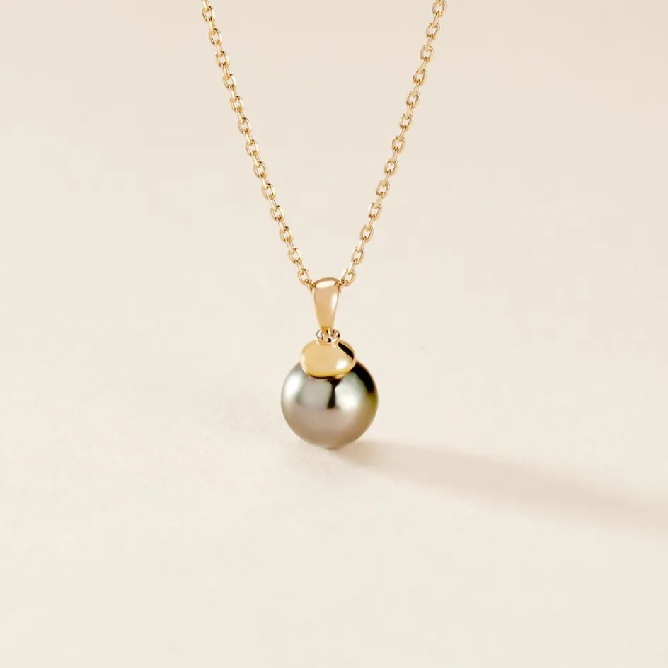 Pendentif Or Jaune 375/1000 Perl Perle De Culture De Tahiti Noire 9.5/10mm