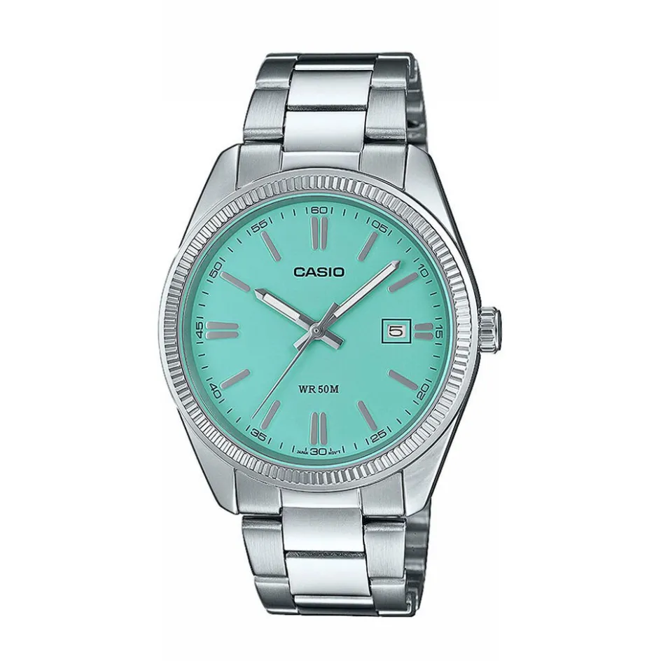Montre Casio Collection Laiton Argenté Ronde Quartz 44.2mm Fond Bleu Bracelet Acier Argenté Mtp-1302pd-2a2vef
