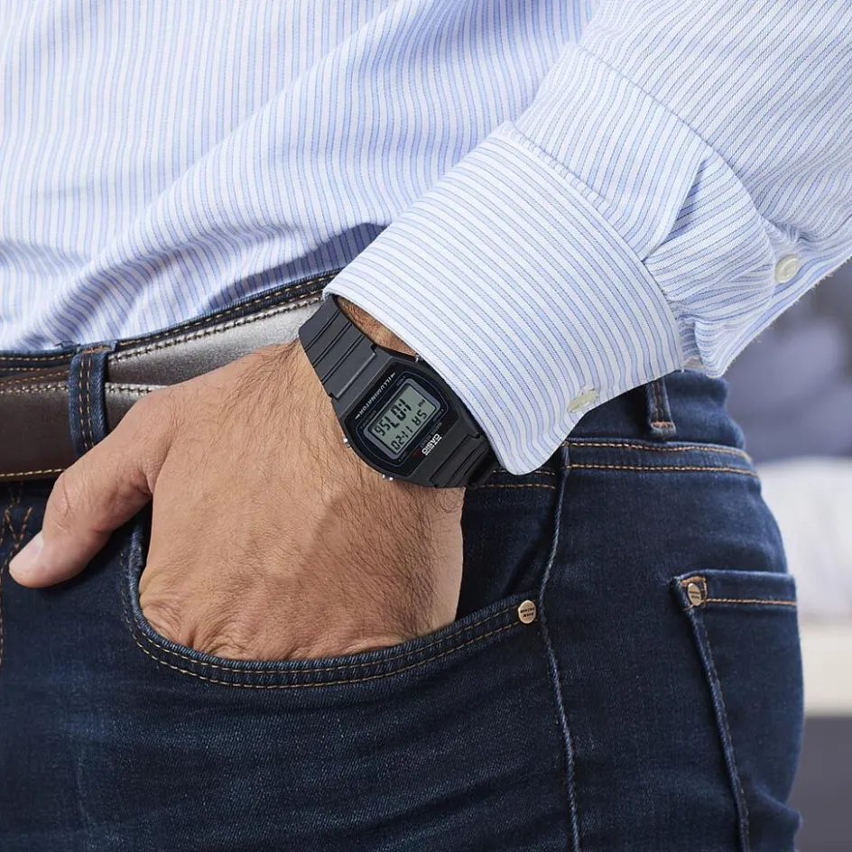 Montre Casio Collection Vintage0 Résine Noire Carrée Quartz 38.9mm Fond Noir Bracelet Résine Noire W-202-1avef