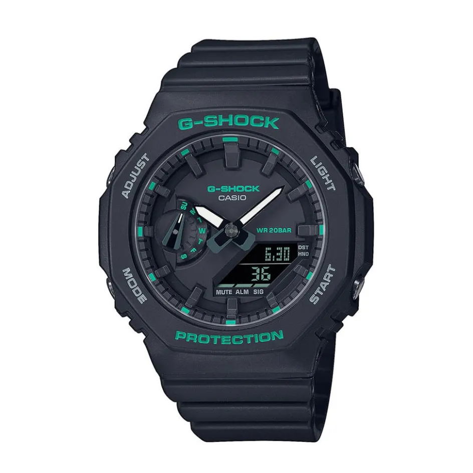 Montre Casio G-shock Classic Carbone Noir Ronde Quartz 46.2mm Fond Noir Bracelet Résine Noir 2atm Gma-s2100ga-1aer