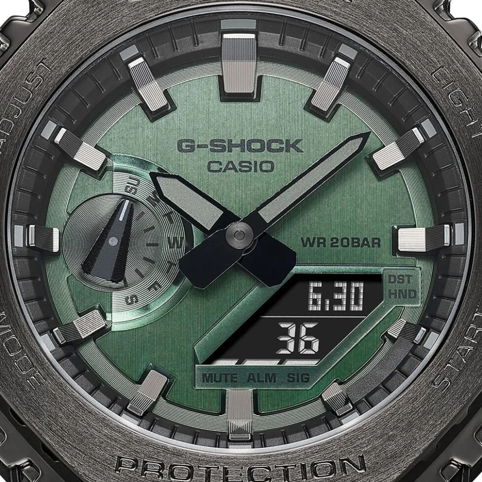 Montre Casio G-shock Résine Gris Ronde Quartz Multifonctions 49.3mm Fond Gris Bracelet Résine Verte Gm-2100b-3aer