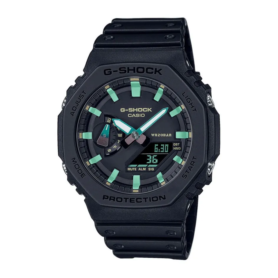 Montre Casio G-shock Anadigit Resine Noire Ronde Quartz Multifonctions 45.40mm Lunette Noire Fond Noir Bracelet Resine Noire Ga-2100rc-1aer