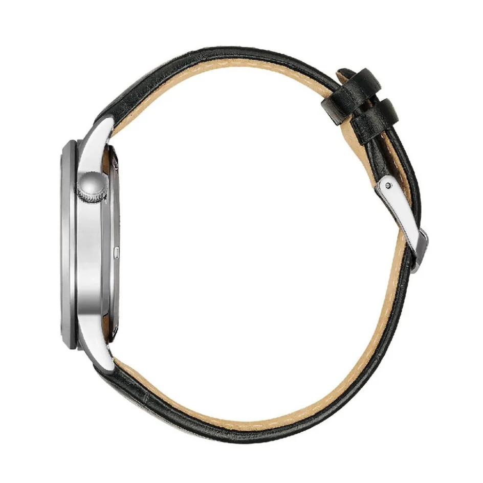 Montre Citizen Platform Acier Argenté Ronde 40mm Automatique Fond Noir C艙ur Ouvert Bracelet Cuir De Veau Noir Nh9131-14e