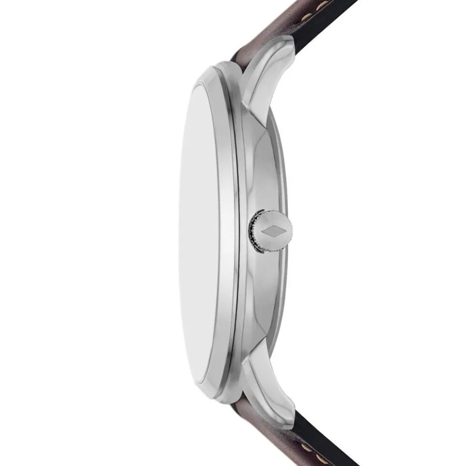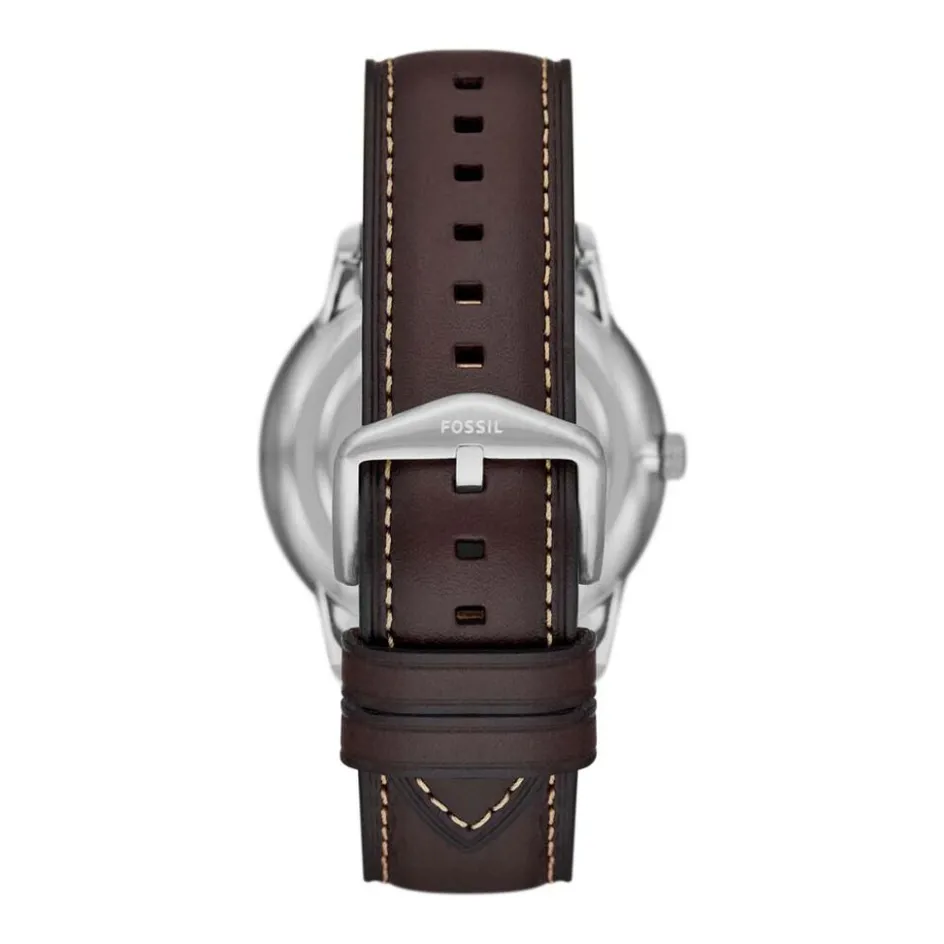 Montre Fossil Neutra Minimalist Acier Blanc Ronde Quartz Multifonctions 42mm Fond Argenté Bracelet Cuir Marron Fs5905