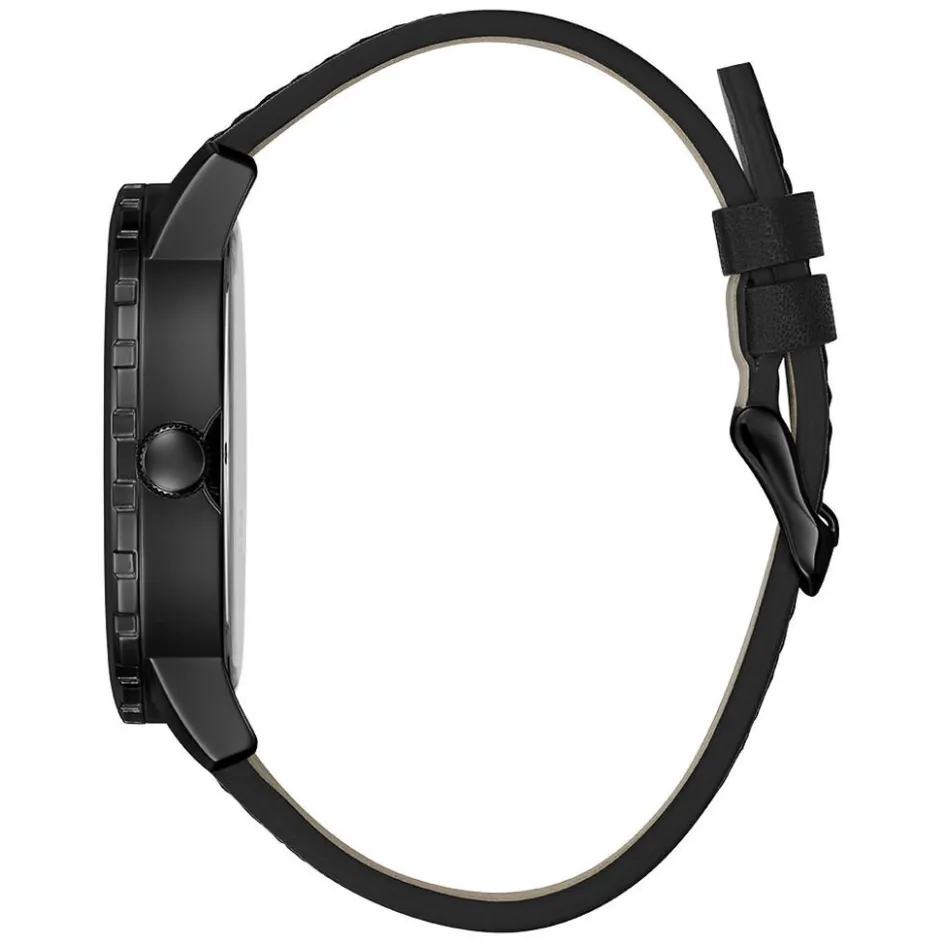 Montre Guess Outlaw Acier Noir Ronde Quartz 48mm Fond Noir Bracelet Cuir Noir Gw0201g2