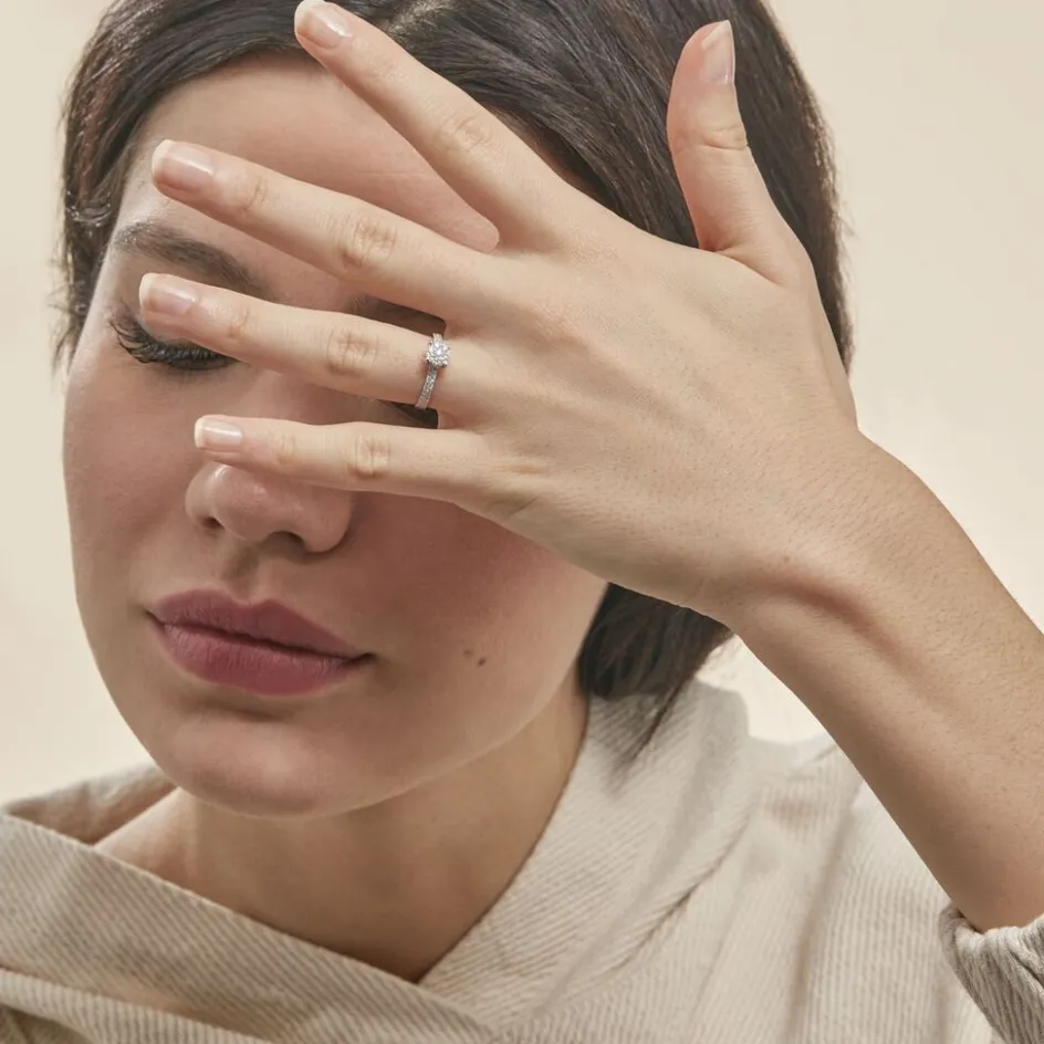 Bague Or Blanc 375/1000 Multi Pierres Diamants 0.324cts Corps De Bague Accompagné Camille