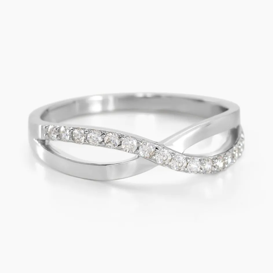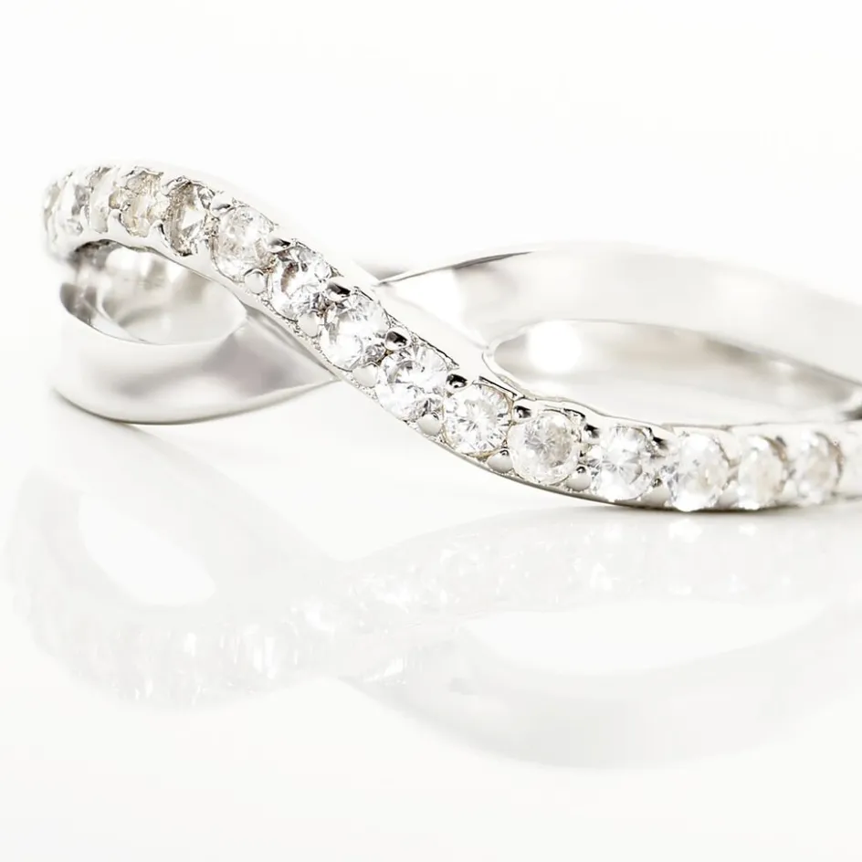 Bague Argent Blanc 925/1000 Croises Oxydes De Zirconium