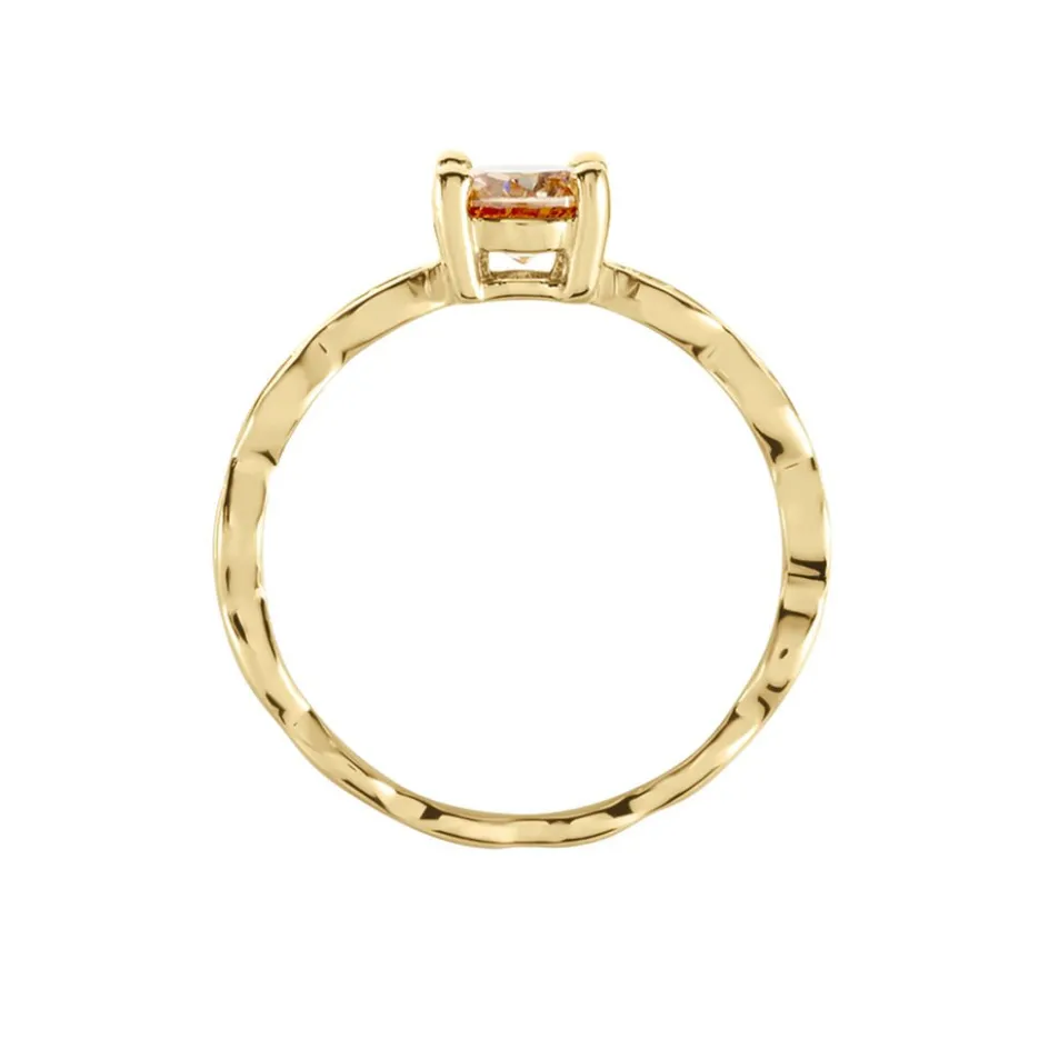 Bague Plaqué Or Jaune Solitaire Oxyde De Zirconium Champagne 4 Griffes Pavage Oxydes De Zirconium