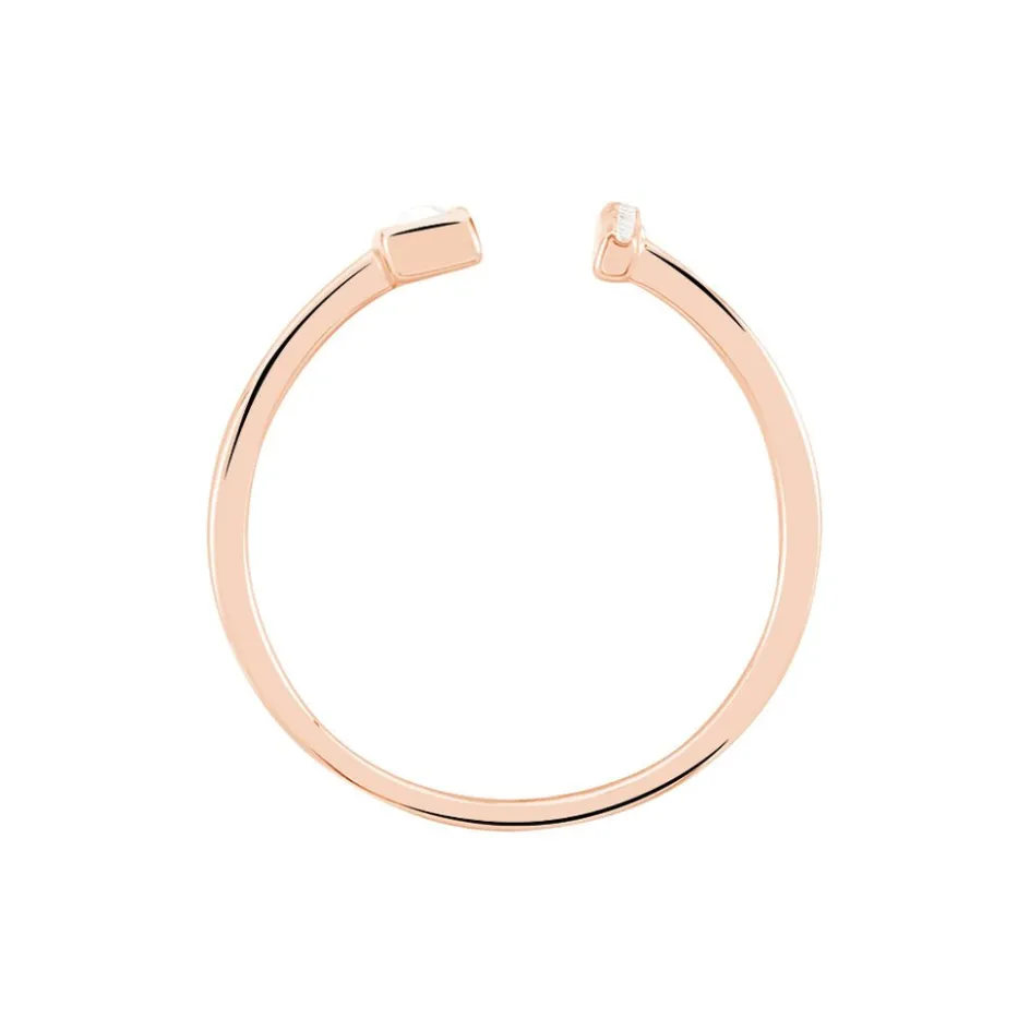 Bague Argent Rose 925/1000 Ouverte Motifs Rectangulaire Et Barrette Oxydes De Zirconium