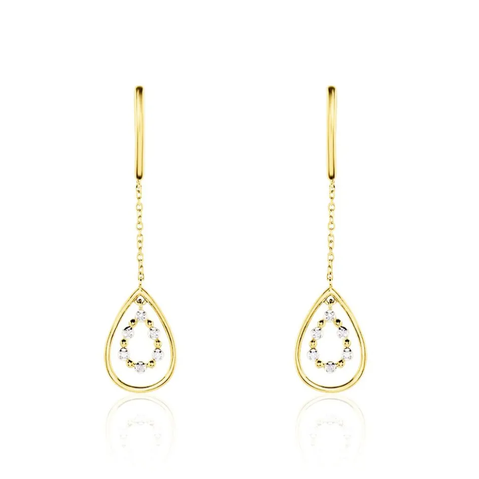 Boucles D’oreilles Pendantes Or Jaune 375/1000 Forme Double Goutte Pavage Diamants
