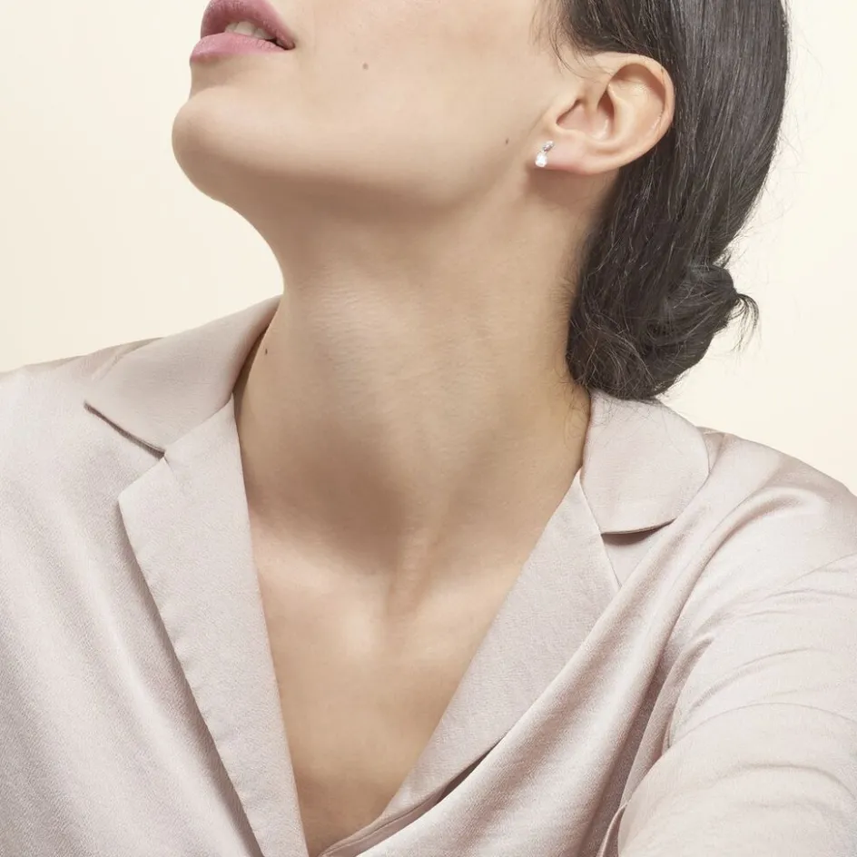 Boucles D’oreilles Argent Blanc 925/1000 Oxydes De Zirconium Forme Goutte