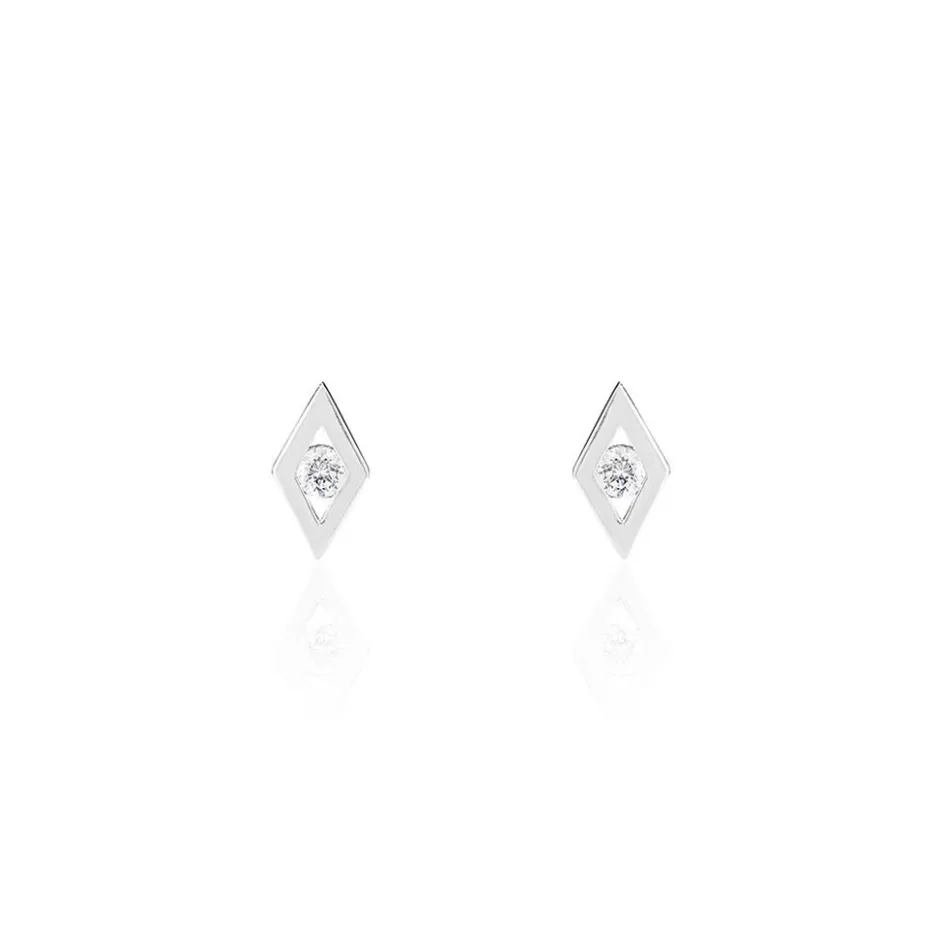 Boucles D’oreilles Or Blanc 375/1000 Puces Motifs Losanges Diamants Centraux 0.066ct