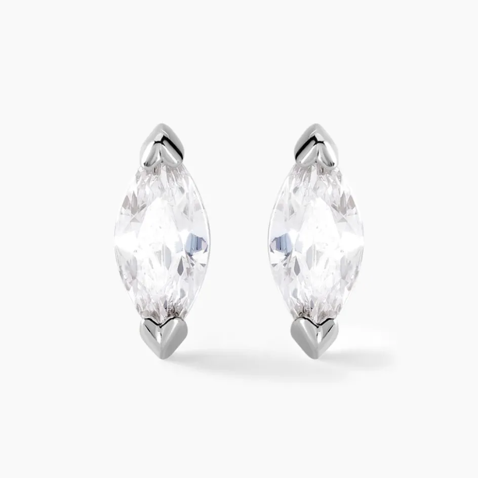 Boucles D’oreilles Puces Argent Blanc 925/1000 S Oxydes De Zirconium Serti Griffes
