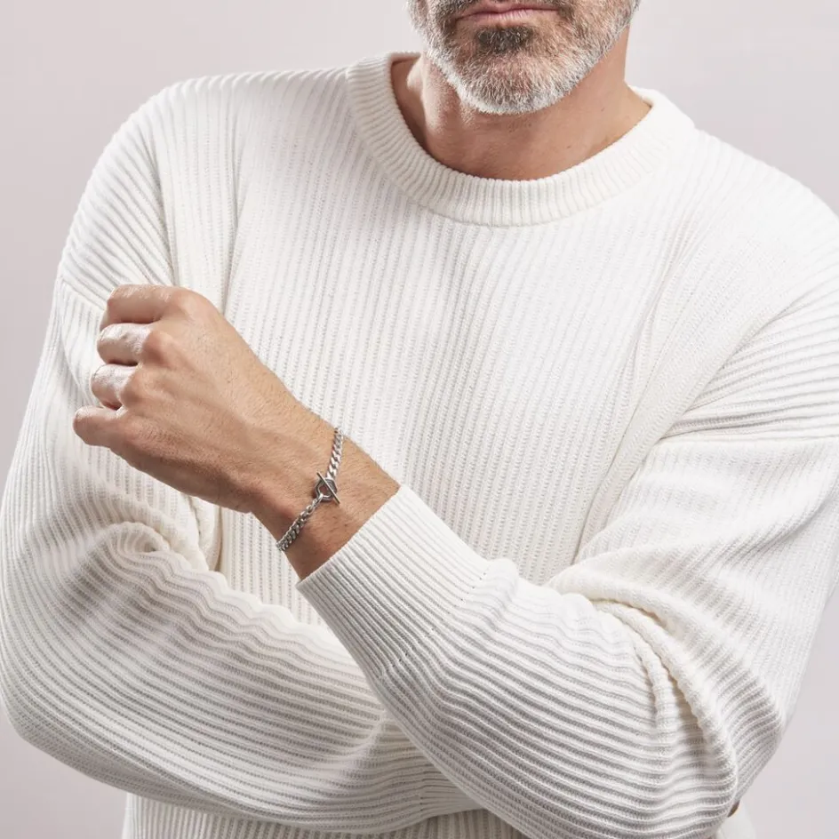 Bracelet Argent Blanc 925/1000 Fermeture Hexagone + Barrette Maille Gourmette 19cm