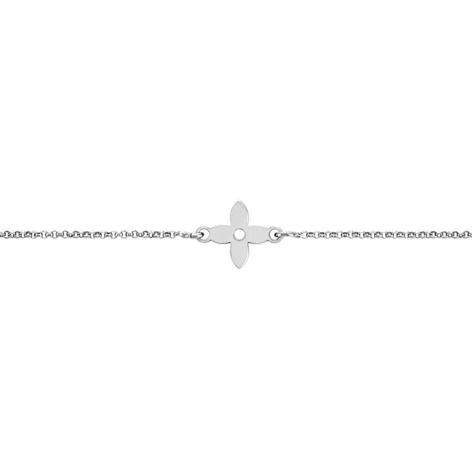 Bracelet Argent Blanc 925/1000 Motif Fleur Maille Forçat 20cm