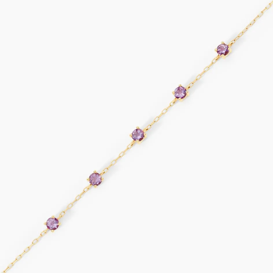 Bracelet Or Jaune 375/1000 5 Amethystes 0,5Cts Serti Griffes Maille Forcat 16+2Cm