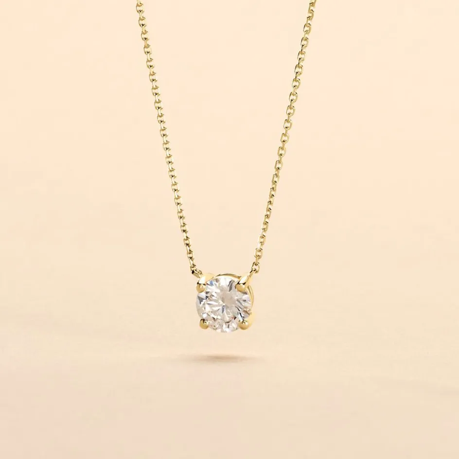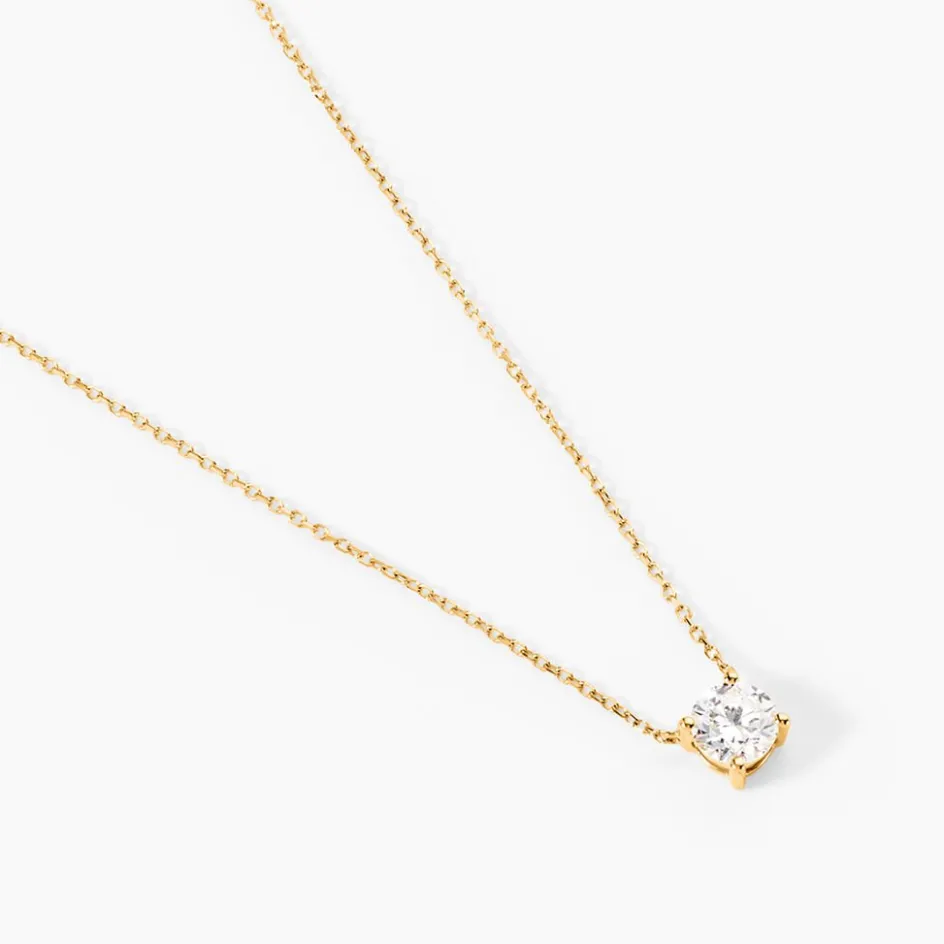 Collier Or Jaune 750/1000 Solitaire Diamant Synthetique 0.70cts 45cm