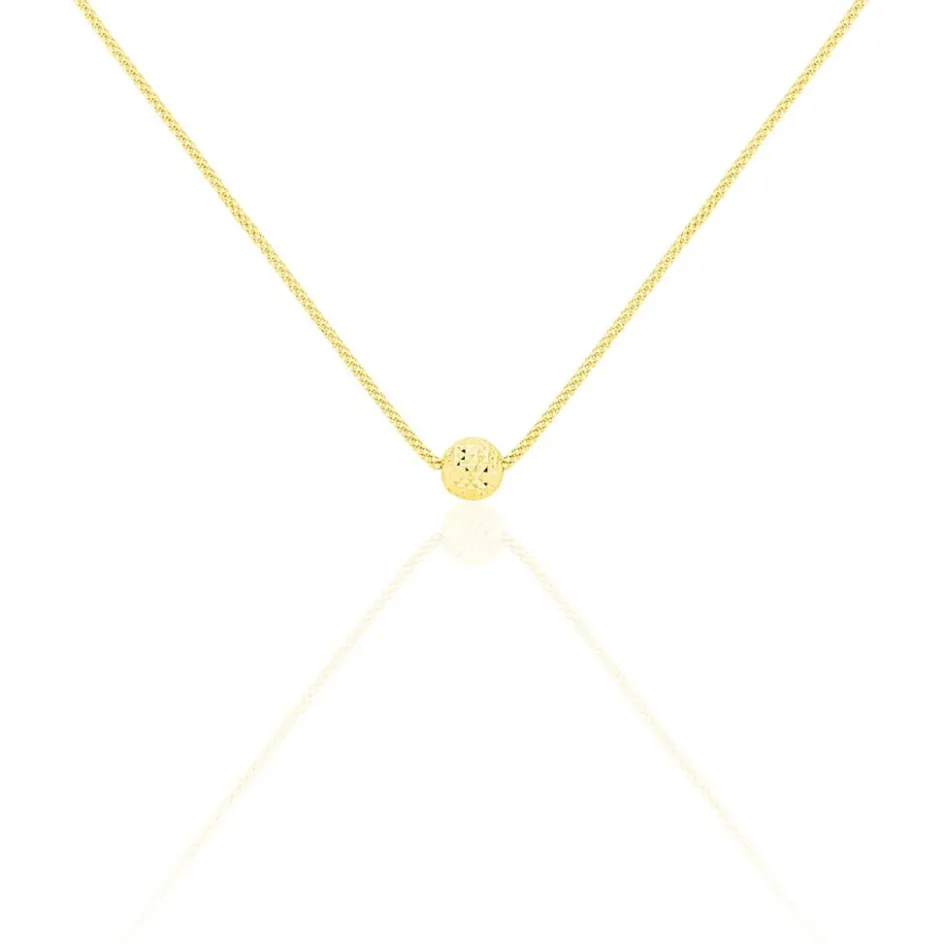 Collier Or Jaune 375/1000 Motif Boule Diamante Maille Pop Corn 42cm