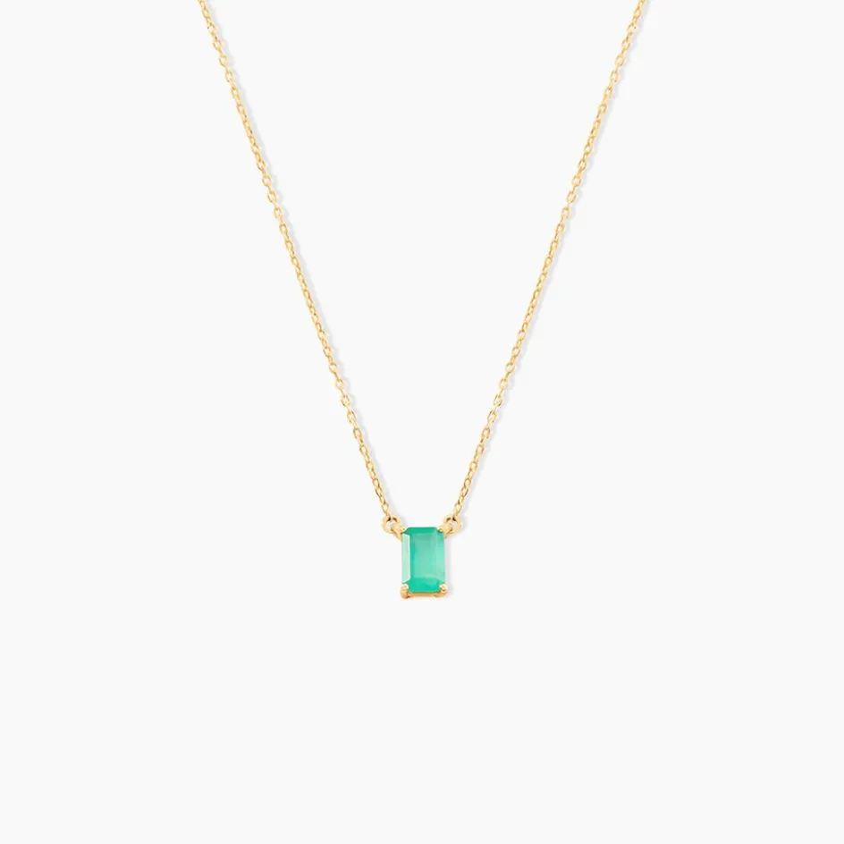 Collier Or Jaune 375/1000 Emeraude Forme Rectangle Serti Griffes 0.55cts Maille Forcat 40+2cm
