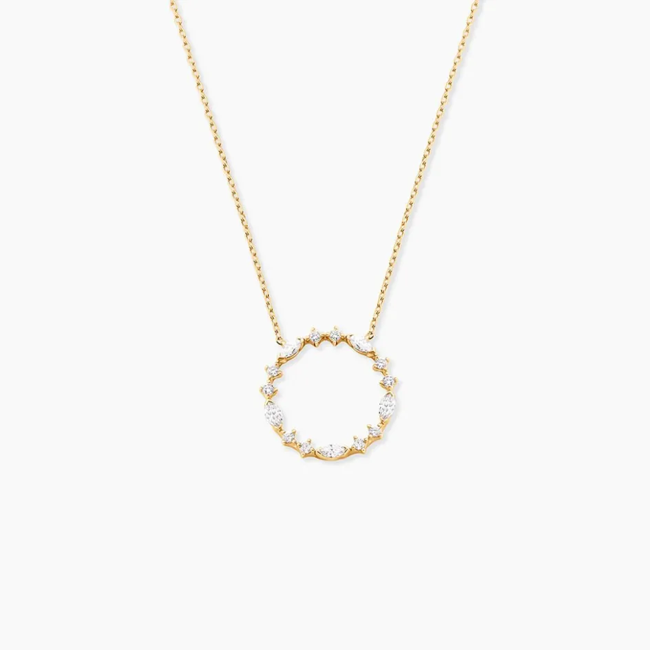 Collier Or Jaune 375/1000 Multipierres Diamants Synthetiques Taille Navette Et Ronde 0,25Cts Sertis Griffes Maille Forcat 40+2Cm