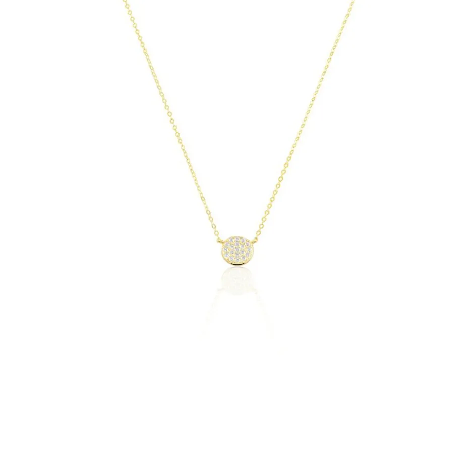 Collier Or Jaune 375/1000 Pastille Ronde Oxyde De Zirconium Maille Forçat 42cm
