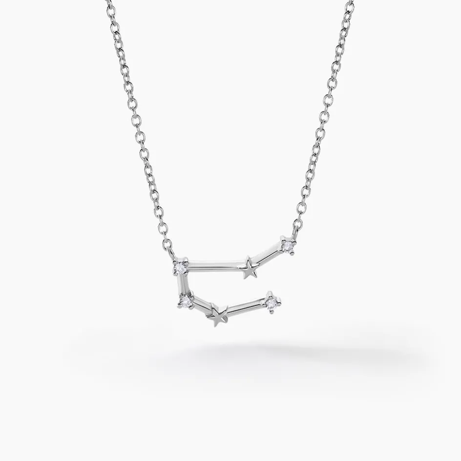 Collier Argent Blanc 925/1000 Constellation Zodiaque Gémeaux Oxydes De Zirconium Maille Forçat 42+3cm