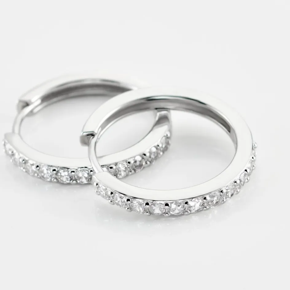 Créoles Classique Argent Blanc 925/1000 Oxydes De Zirconium Serti Griffes Diamètre 20mm