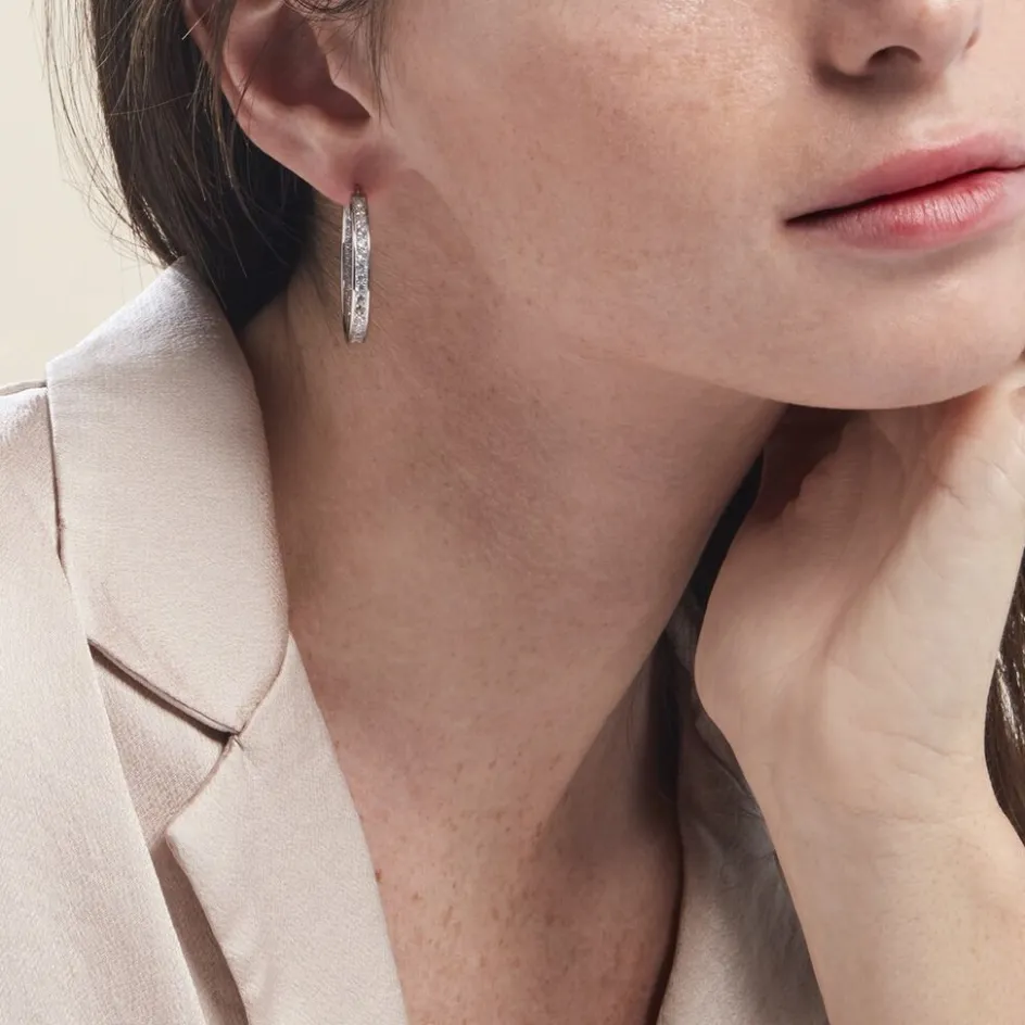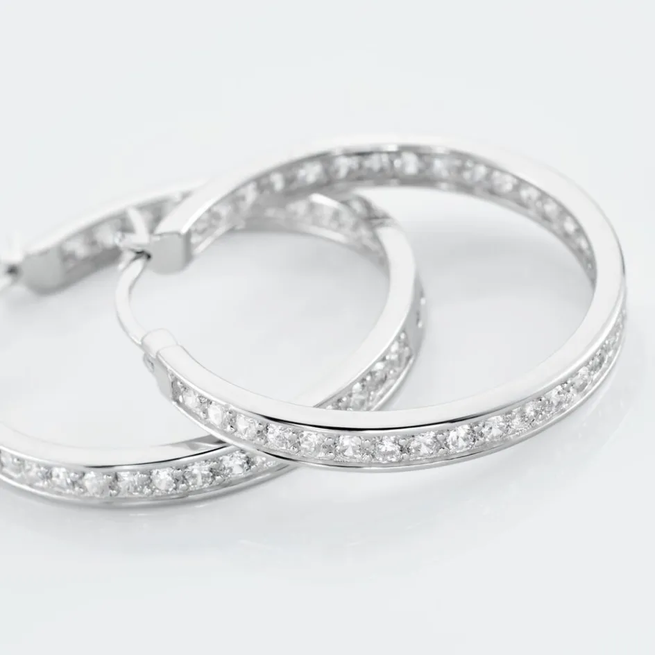 Créoles Classique Argent 925/1000 Oxydes De Zirconium Serti Griffes Diamètre 30mm