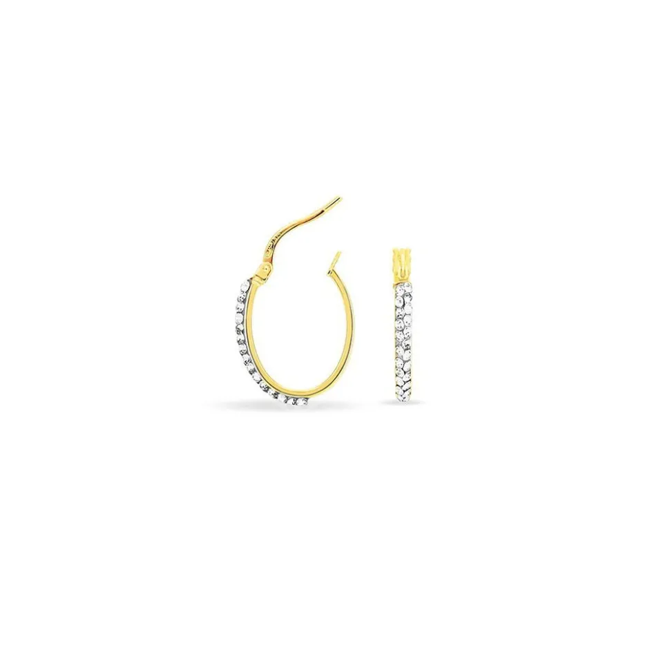Créoles Or Jaune 375/1000 Ovale Fil Carré Strass Largeur 1.8mm Diamètre 17x13mm