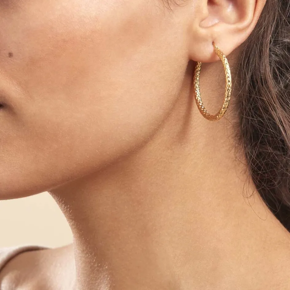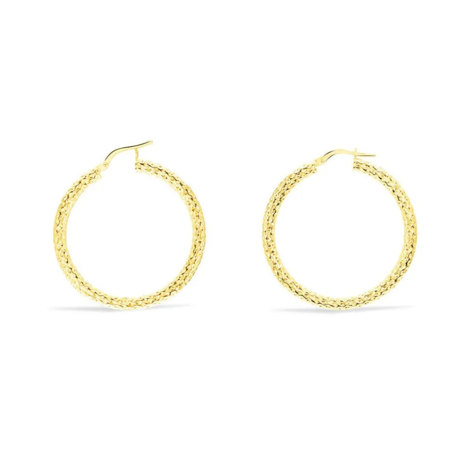 Créoles Or Jaune 375/1000 Fil Rond Martele Largeur 3mm Diamètre 30mm