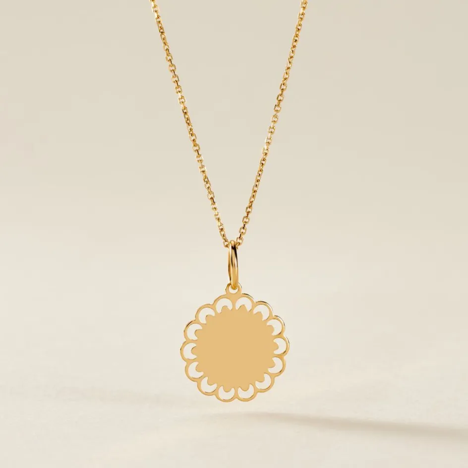 Pendentif Or Jaune 375/1000 Pastille Denteléee Gravable Diametre 13.5mm