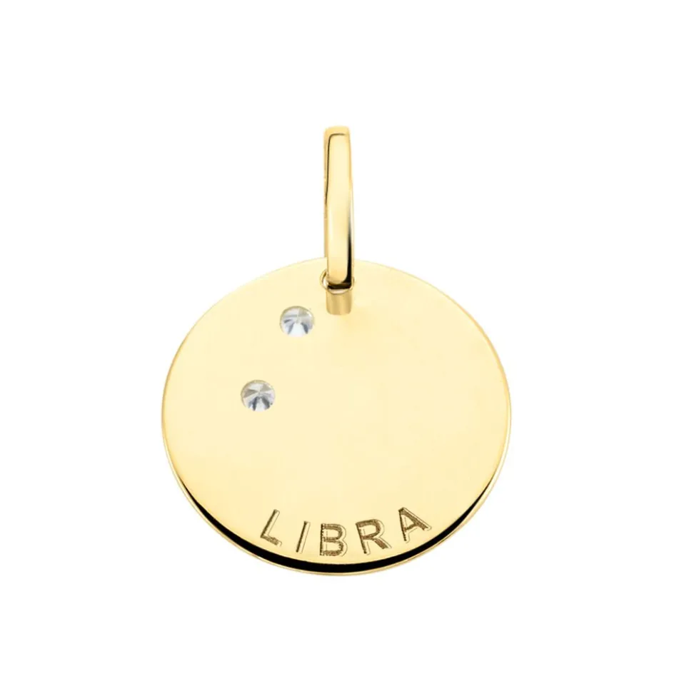 Pendentif Or Jaune 375/1000 Zodiaque Balance Oxyde De Zirconium 0.045cts Serti Grains