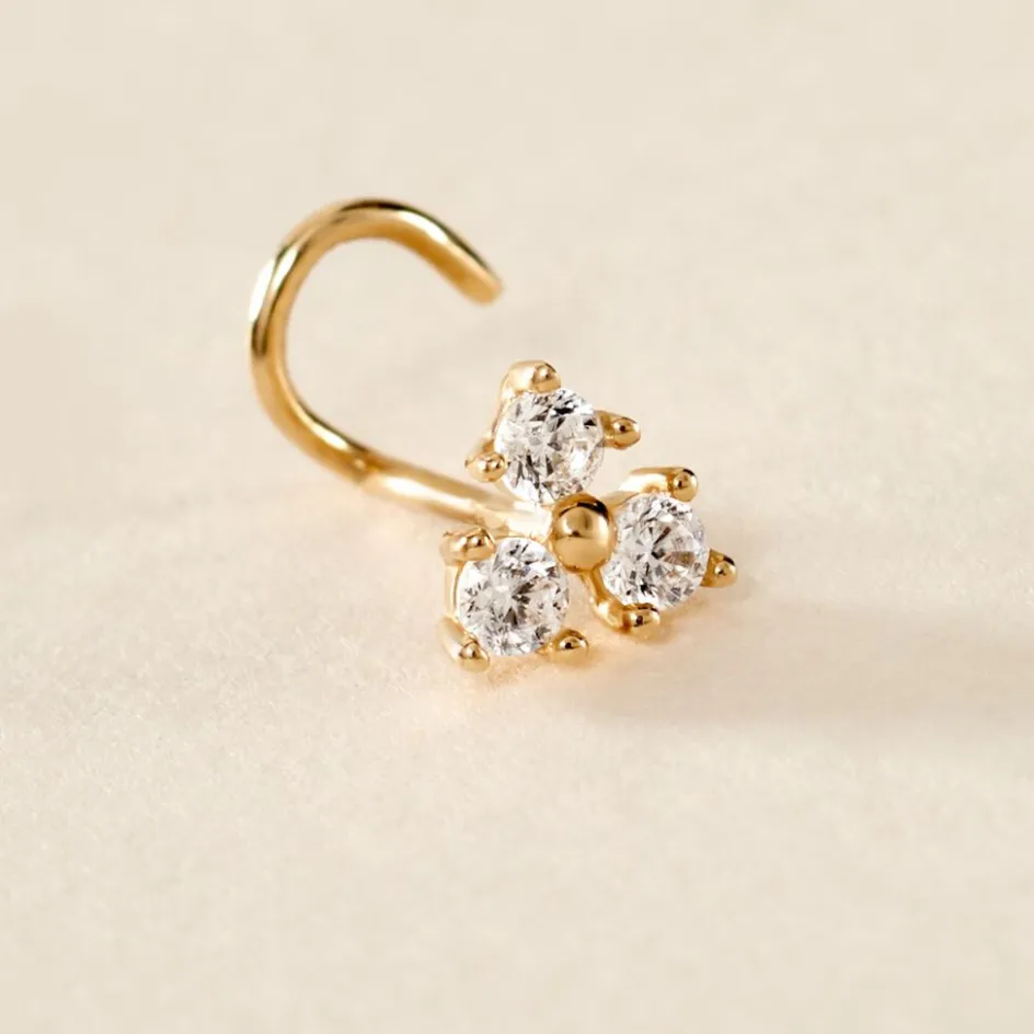 Piercing De Nez Or Jaune 375/1000 3 Oxydes De Zirconium Sertis Griffes